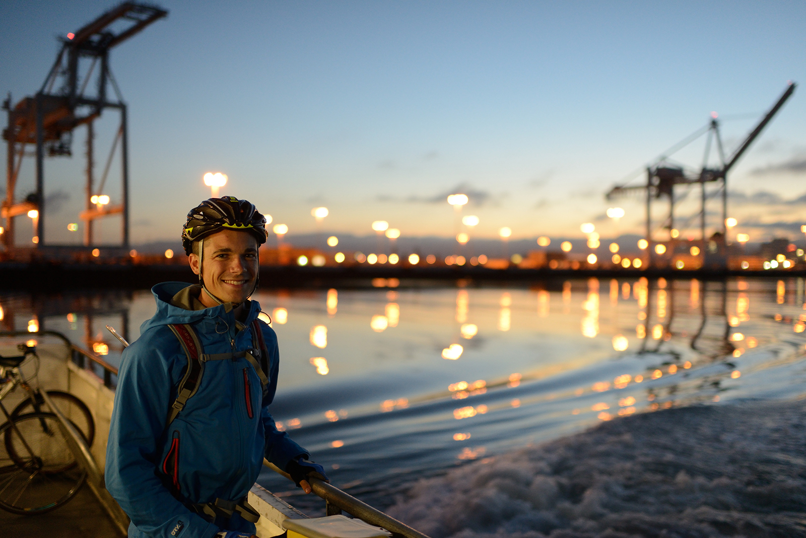 of sand into our bikes). Sunlight shining down on us as we rolled back across the Embarcadero. John (our fearless and tireless guide