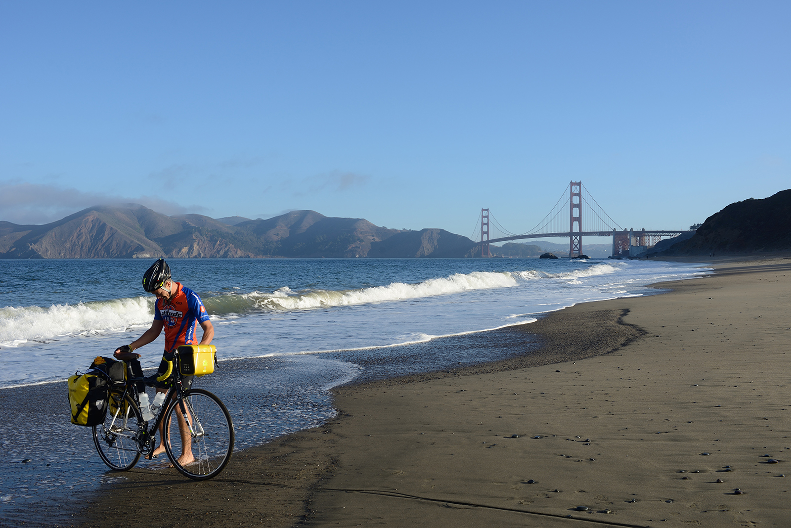Golden Gate Bridge at sunrise. Baker Beach where we dipped our tires in the great Pacific (and kick up a LOT